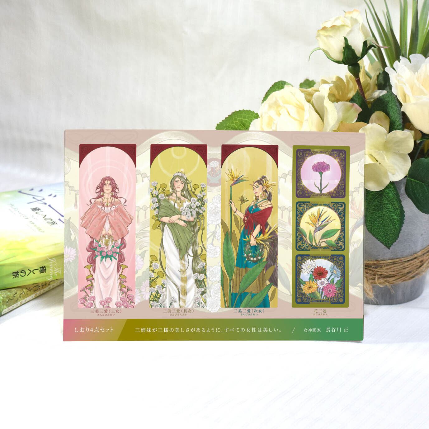 三姉妹それぞれの美しさを描いた「三美三愛」(さんびさんあい)を「飾れるしおり」にいたしました。